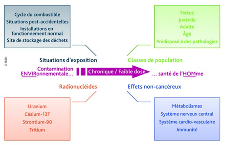 définir la nature et l’amplitude des effets biologiques de type non-cancéreux dus à une exposition chronique à de faibles concentrations de radionucléides ;
