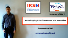 Emmanuel Mathé, chercheur au Laboratoire d’étude du corium et du transfert des radioéléments (LETR) de l’IRSN, a été récompensé par l’AIEA pour sa vidéo « Post-Accident Aerosol Ageing in the Containment » présentée lors de la conférence internationale « Fast reactors and related fuel cycle » 2013 (i.e. conférence FR13).