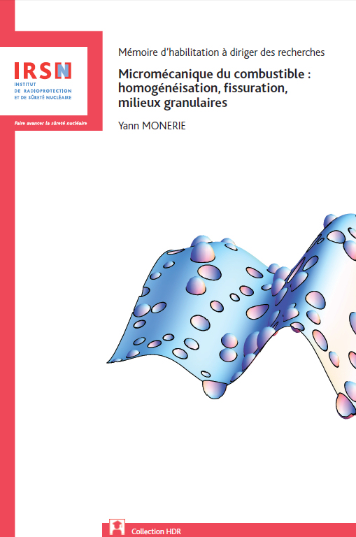 La collection HDR de l’IRSN s’enrichit d’un nouveau mémoire d’Habilitation à diriger des recherches soutenue par Yann Monerie en septembre 2010, intitulé "Micromécanique du combustible : homogénéisation, fissuration, milieux granulaires".