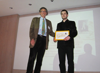 Pierre Roupsard, doctorant à l'IRSN, a reçu le prix Jean Bricard décerné par l’Association française d’études et de recherches sur les aérosols (Asfera) lors de sa réunion annuelle le 23 janvier 2013. Le prix récompense son travail de thèse, soutenu le 21 janvier 2013, sur l’étude phénoménologique du dépôt sec d’aérosols en milieu urbain, réalisé au Laboratoire de Radioécologie de Cherbourg-Octeville de l’IRSN.
