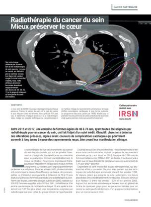 Avec près de 60 000 nouveaux cas diagnostiqués chaque année en France, le cancer du sein est le type de cancer le plus fréquent chez les femmes. Dans près de 70 % des cas, le traitement implique un recours à la radiothérapie. Mais, malgré les progrès techniques de ces protocoles et un meilleur ciblage du rayonnement sur la tumeur, le risque d’effets secondaires cardiaques à long terme subsiste. Le programme Baccarat, piloté par l’IRSN, étudie pour la première fois les prémices de cette cardiotoxicité durant les vingt-quatre premiers mois qui suivent le traitement.