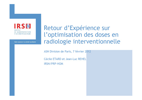 Séminaire "Radioprotection des travailleurs et des patients lors d'actes interventionnels" de l'Autorité de sûreté nucléaire / 7 février 2012