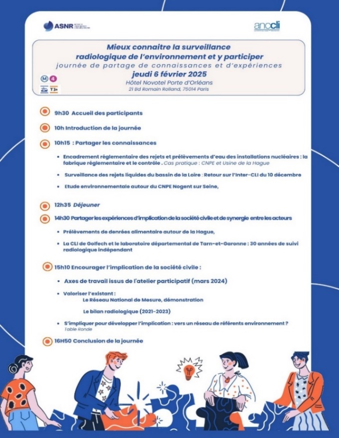 Les mercredi 31 janvier et jeudi 1er février 2024, trois « Rendez-vous » ont été organisés avec l’ANCCLI pour renforcer et approfondir l’implication de la société civile dans les programmes de surveillance de l’environnement de l’ASNR :