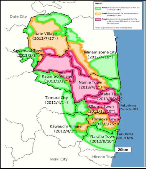 Dans ce contexte, le gouvernement japonais a décidé de recycler les terres dont l’activité massique est inférieure à 8 000 Bq/kg, notamment en les utilisant pour des travaux publics (remblais de route, digues,…). Cette réutilisation est toutefois conditionnée au respect de la limite réglementaire d’exposition du public, fixée à