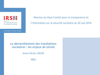 par Yves LHEUREUX, ANCCLI, et Audrey LEBEAU-LIVE, IRSN.