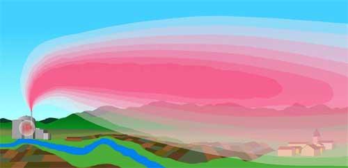En cas de rejet accidentel de substances radioactives dans l’atmosphère, une dispersion se produit en fonction des conditions météorologiques, entraînant une contamination de l’air plus ou moins importantes. Cette contamination est élevée à proximité immédiate de l’installation nucléaire à l’origine des rejets et diminue en s’éloignant du point de rejet.